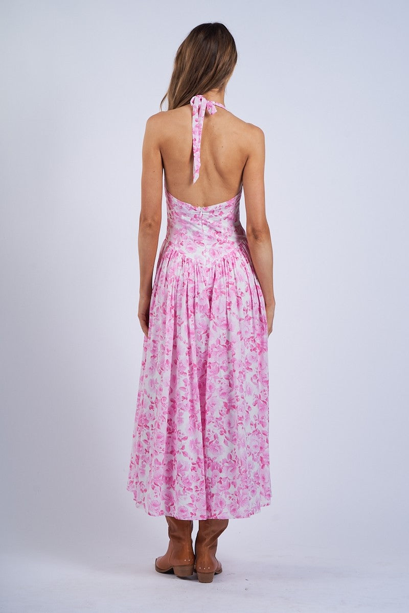 Pink Peonies Halter Midi Dress