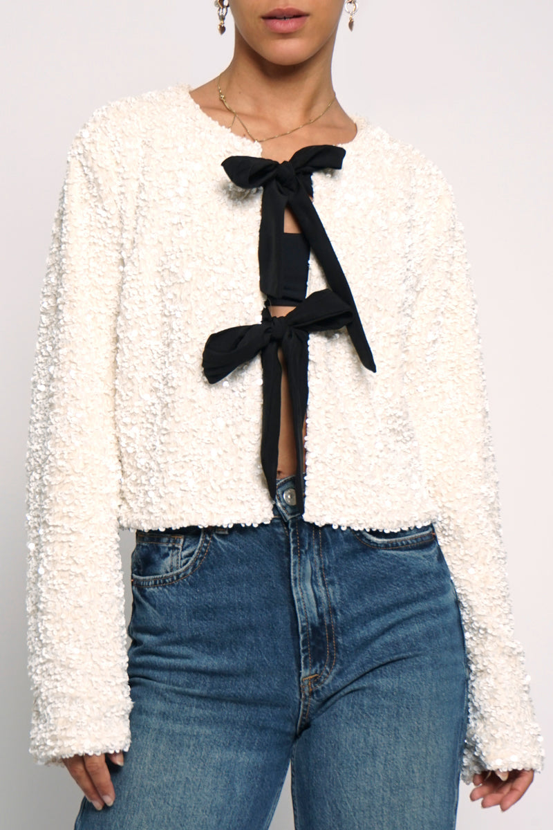 Sequin Bow Jacket in White