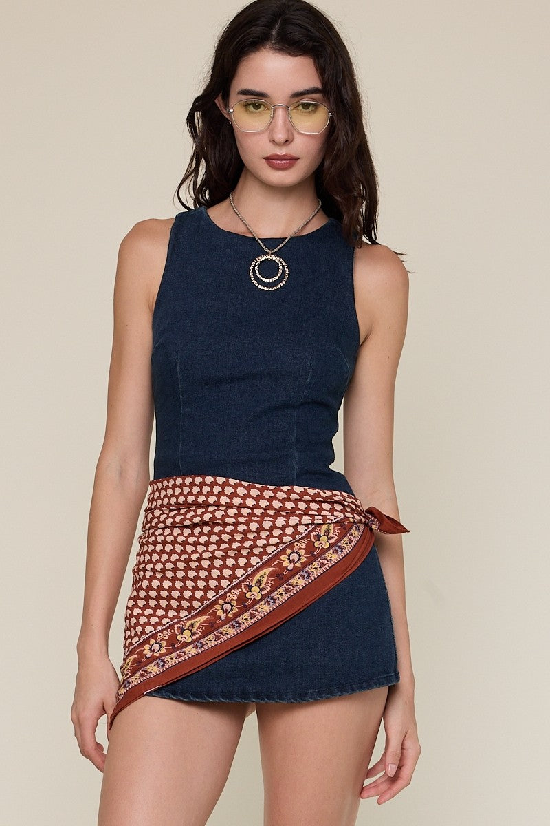 Denim Micro Mini Dress With Built in Shorts in Denim