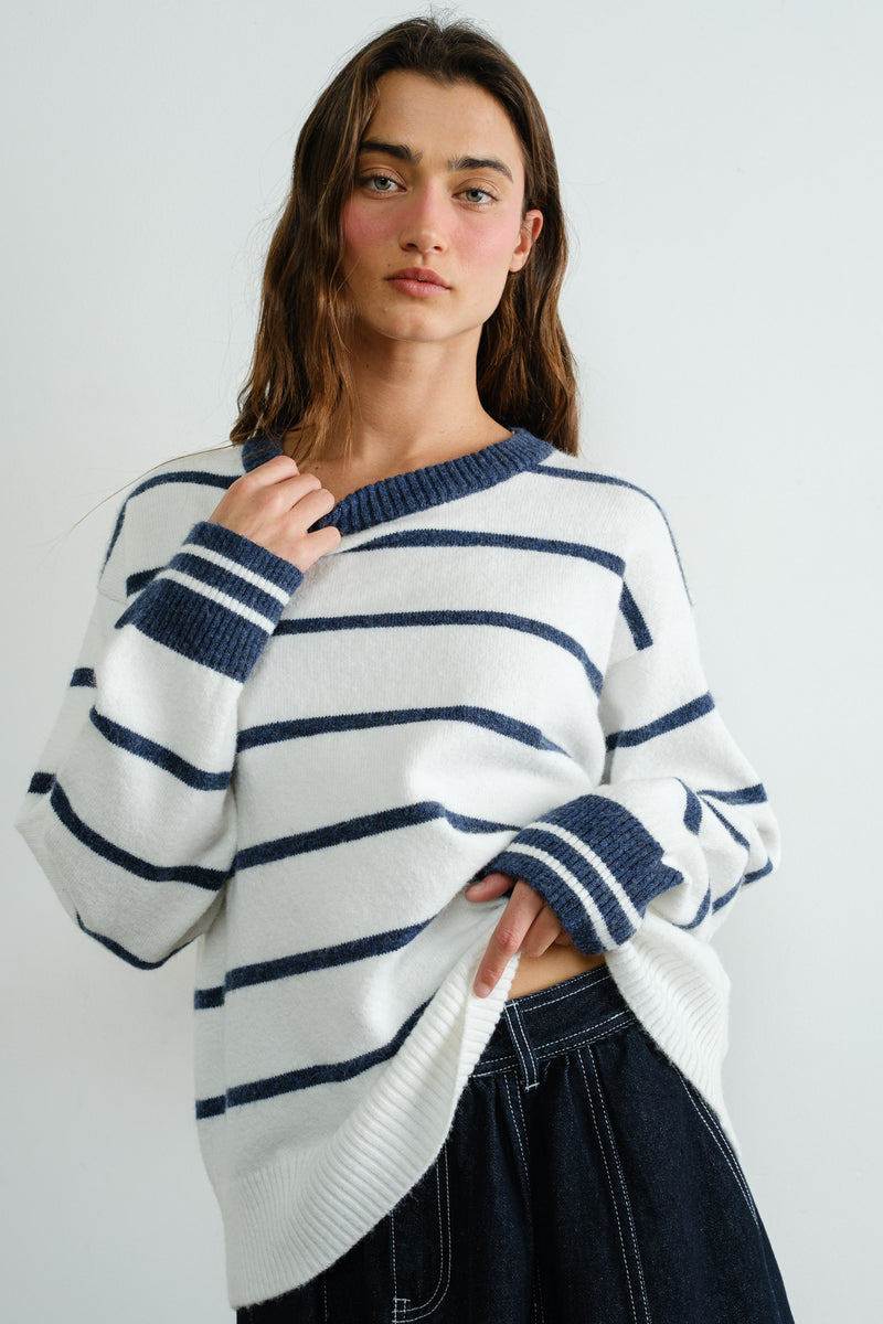 Navy Stripe Classic Pull Over Sweater