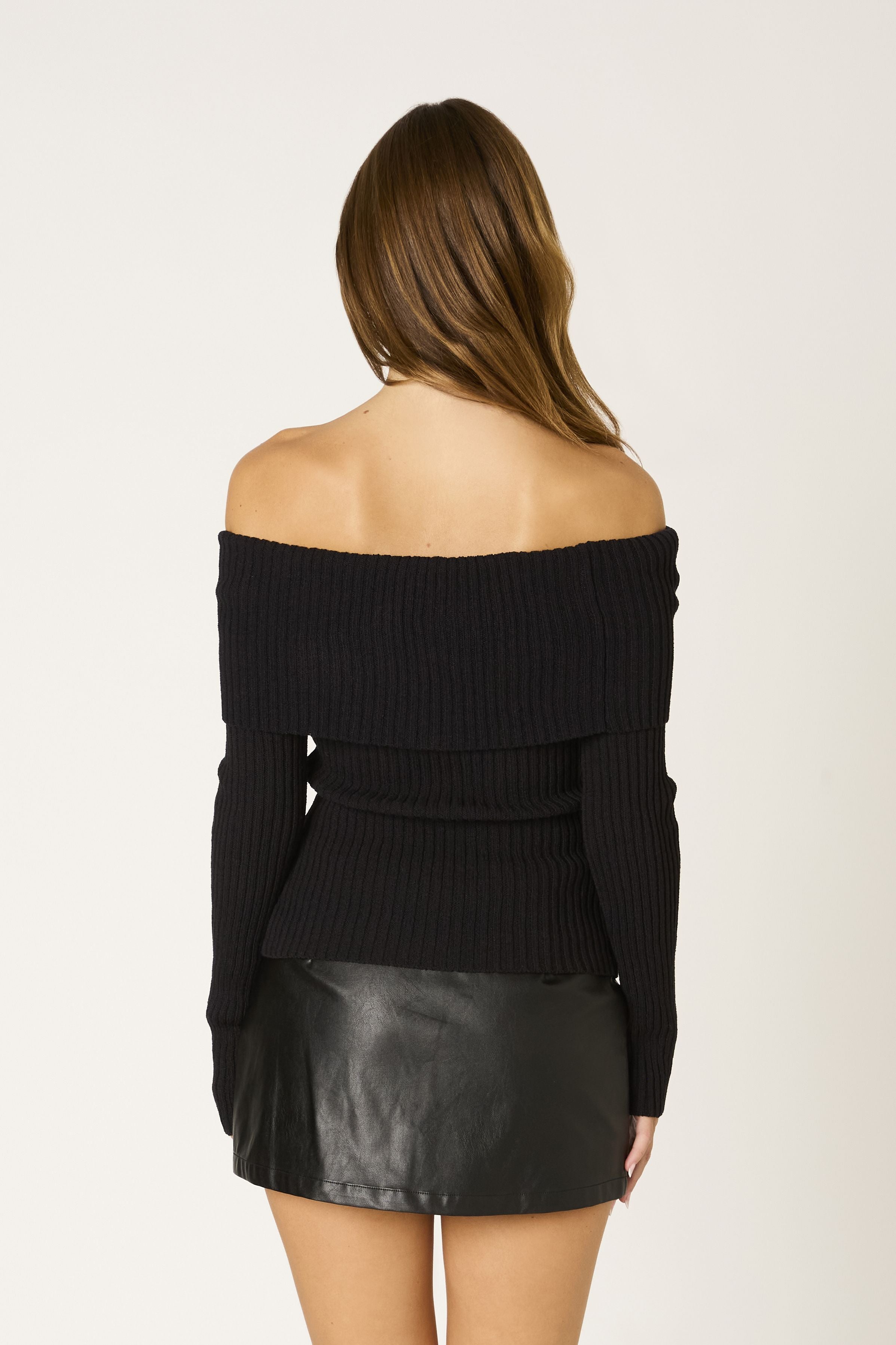 Slip into effortless elegance with this chic ribbed sweater that's ready to turn heads. The foldover neckline adds a flirty touch while the fitted silhouette hugs you in all the right ways. Long sleeves keep things cozy, and that ribbed knit texture? Pure sophistication. Whether you're dressing up for a night out or keeping it casual, this off-shoulder stunner works overtime in your wardrobe. Black never looked so good.